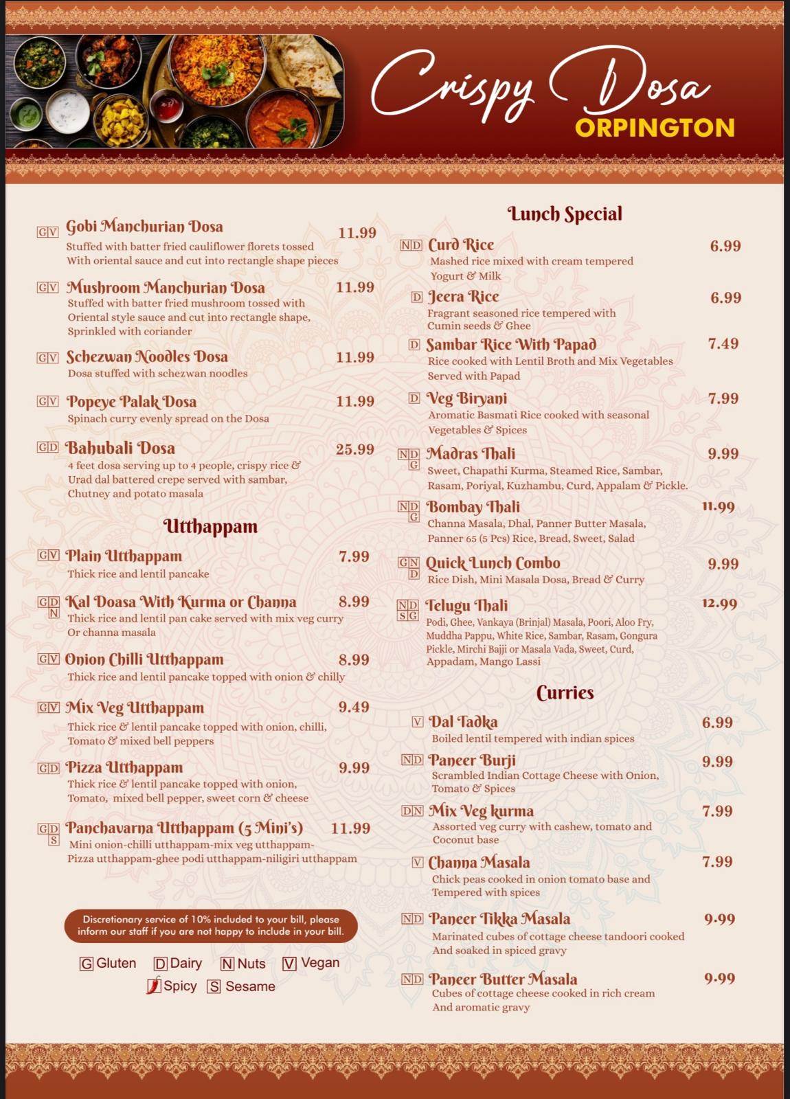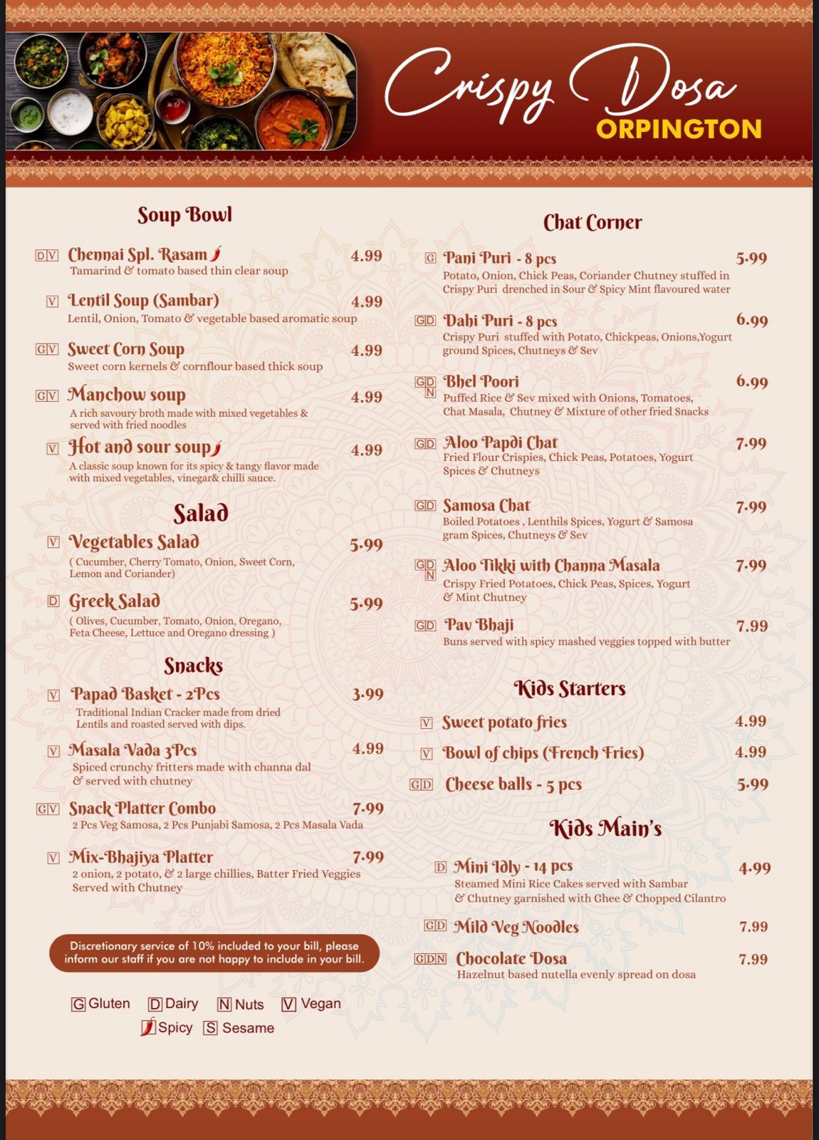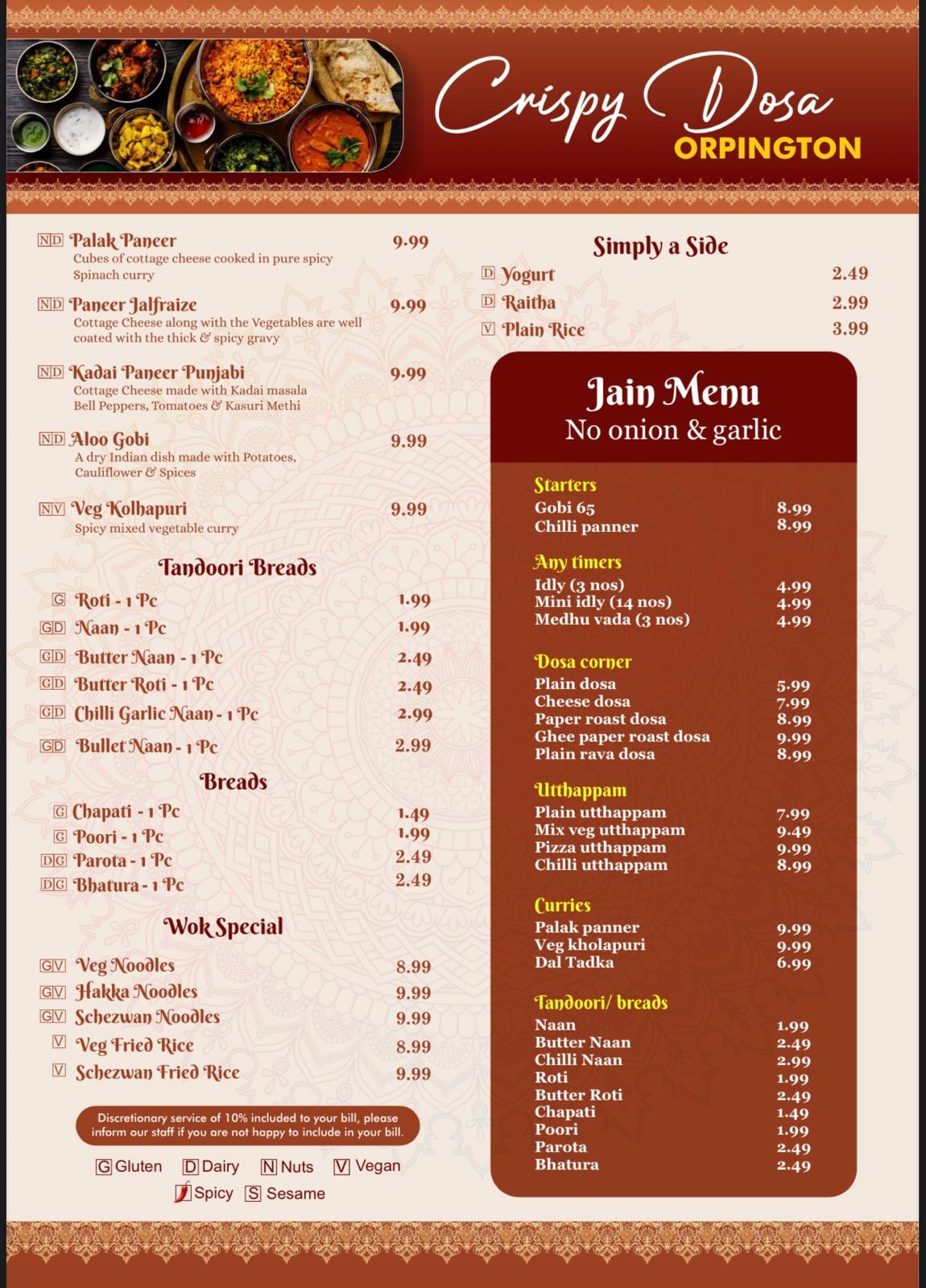 Crispy Dosa in Orpington is a warm and cozy South Indian spot known for authentic flavours, generous servings, and friendly hospitality. With crispy dosas, flavourful chutneys, and special treats like paan ice cream, it delivers a true taste of South India in a comfortable, welcoming setting.